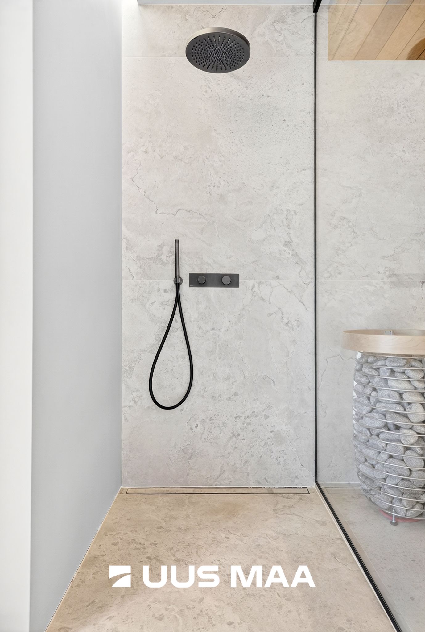 Sisekujunduse on loonud disainer Kärt Tähema, kelle käekiri ühendab betooni jõulisuse ja puidu soojuse. Tulemuseks on keskkond, mis on ühtaegu luksuslik, rahulik ja esteetiliselt täiuslik. Eraldi tähelepanu väärivad maast-laeni uksed, kust puuduvad uksepiidad ja nähtavad uksehinged, mis teeb neist tõeliselt monumentaalsed elemendid, mis toovad ruumi nii avarust kui suursugusust. Kasutatud on ainult pehmeid ja sooju toone ning viimistlusmaterjalina mikrotsementi tavapäraste värvilahenduste ja keraamiliste plaatide asemel.
