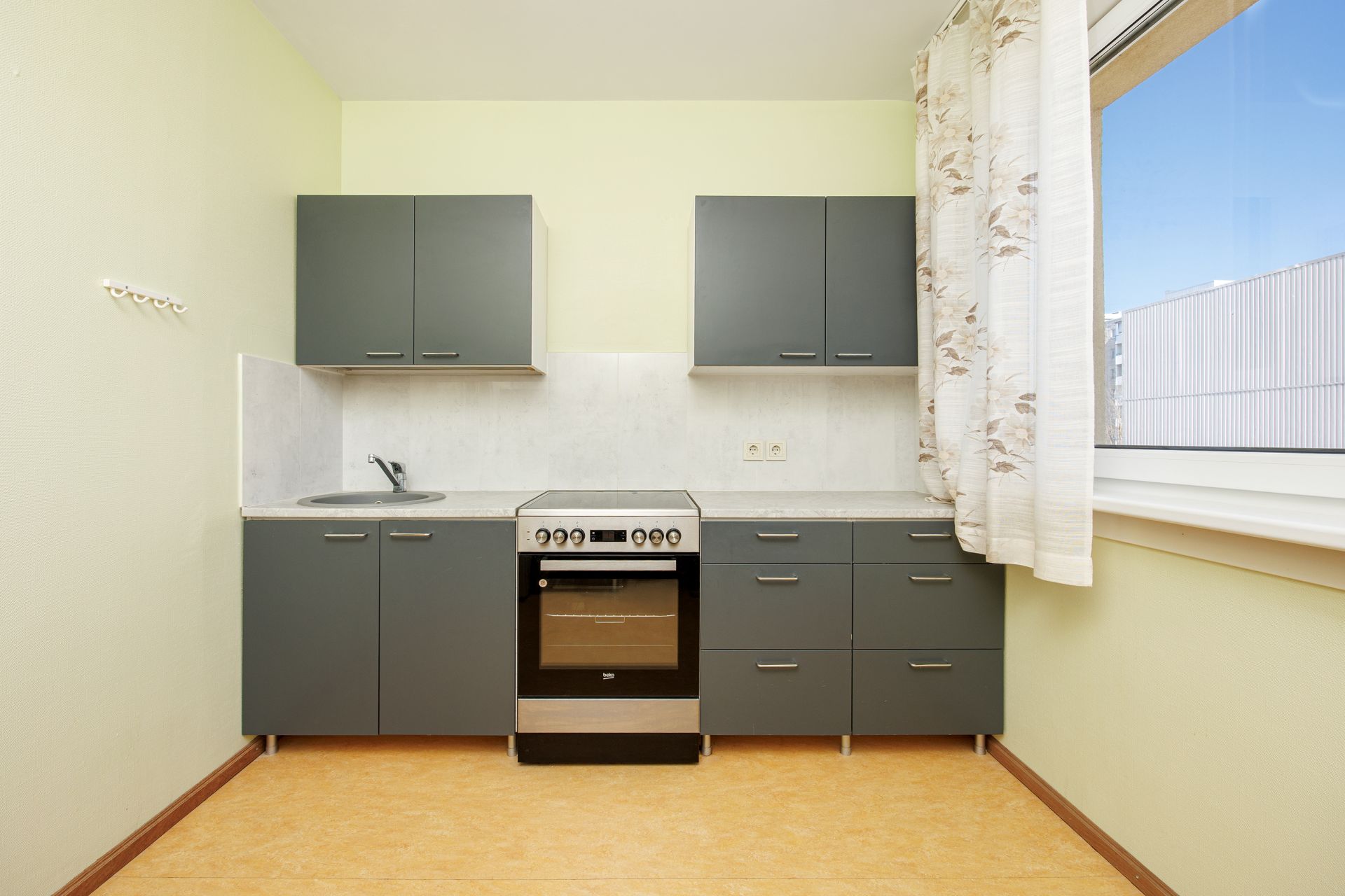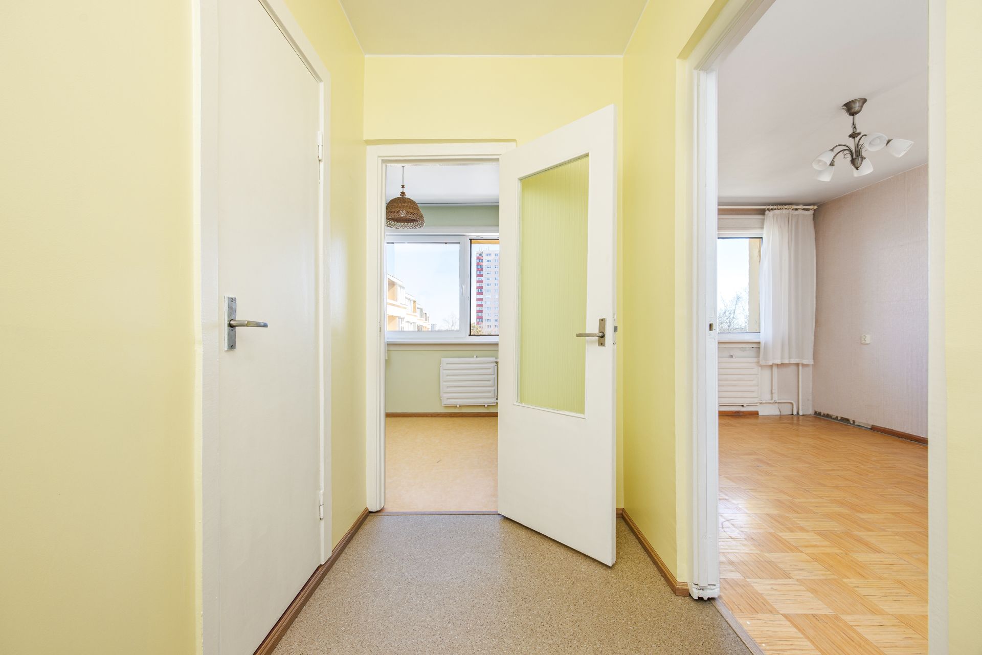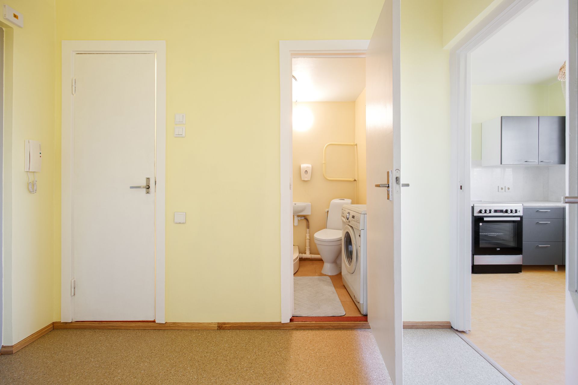 Korterisse sisenedes ootab Teid ees esikuala, mille vasakul käel asub majapidamiseruum ja vannituba koos WC-ga. Otse paikneb eraldi asetsev köök. Paremale käele jääb elutuba.