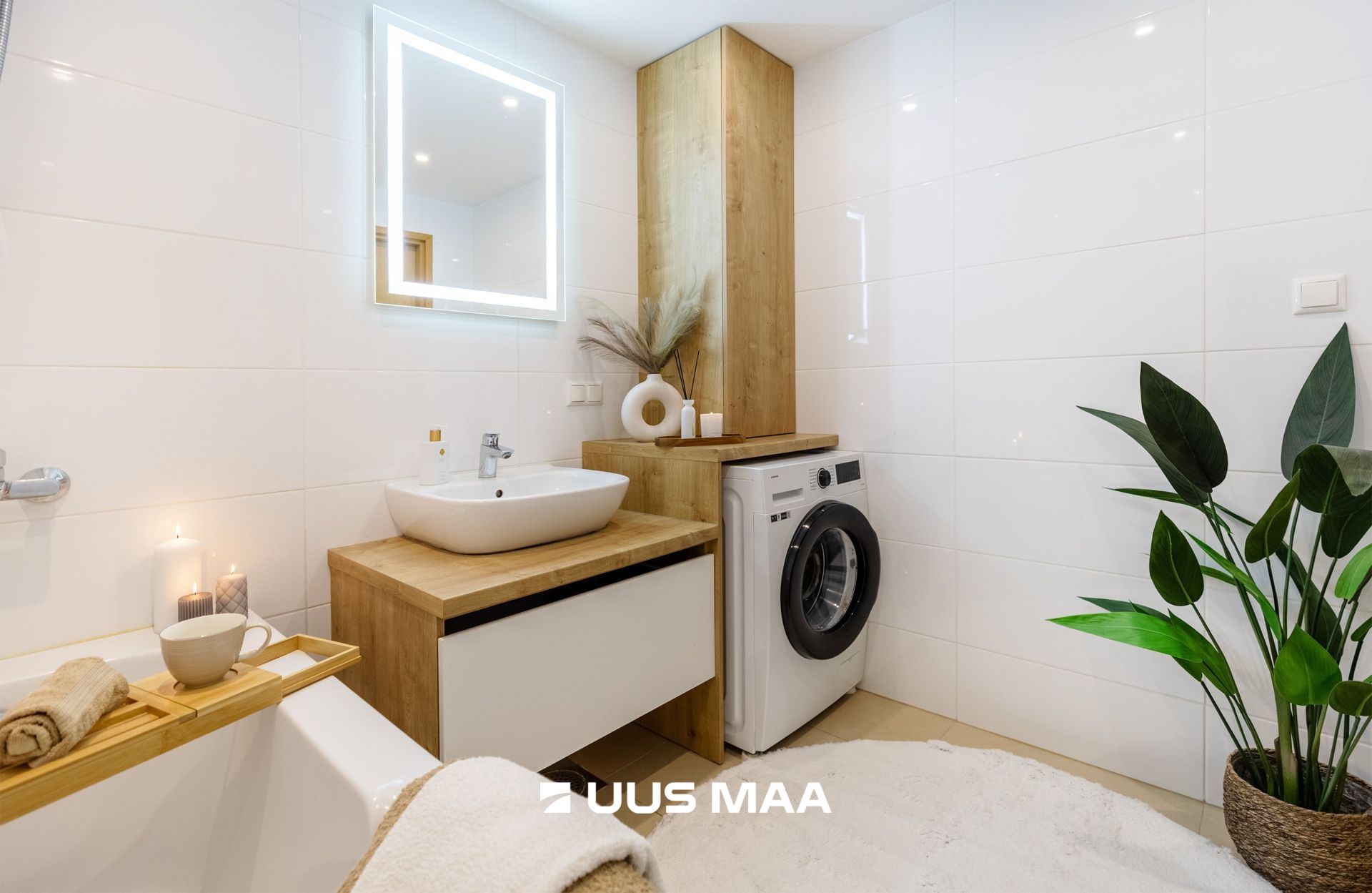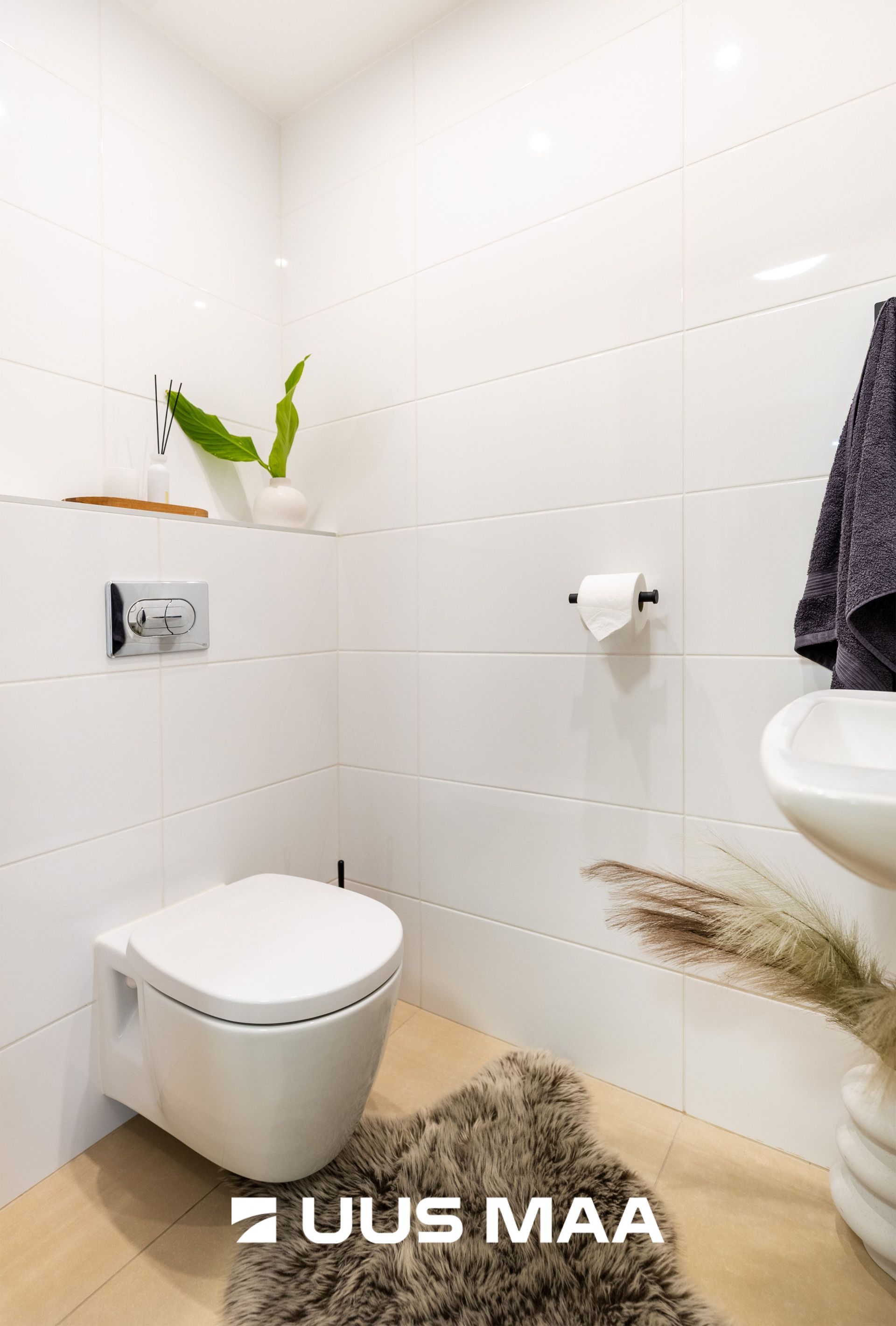 Korteris on eraldi vannituba ja tualettruum, mis muudab igapäevaelu mugavamaks. Sisekujunduses on kasutatud heledaid toone.