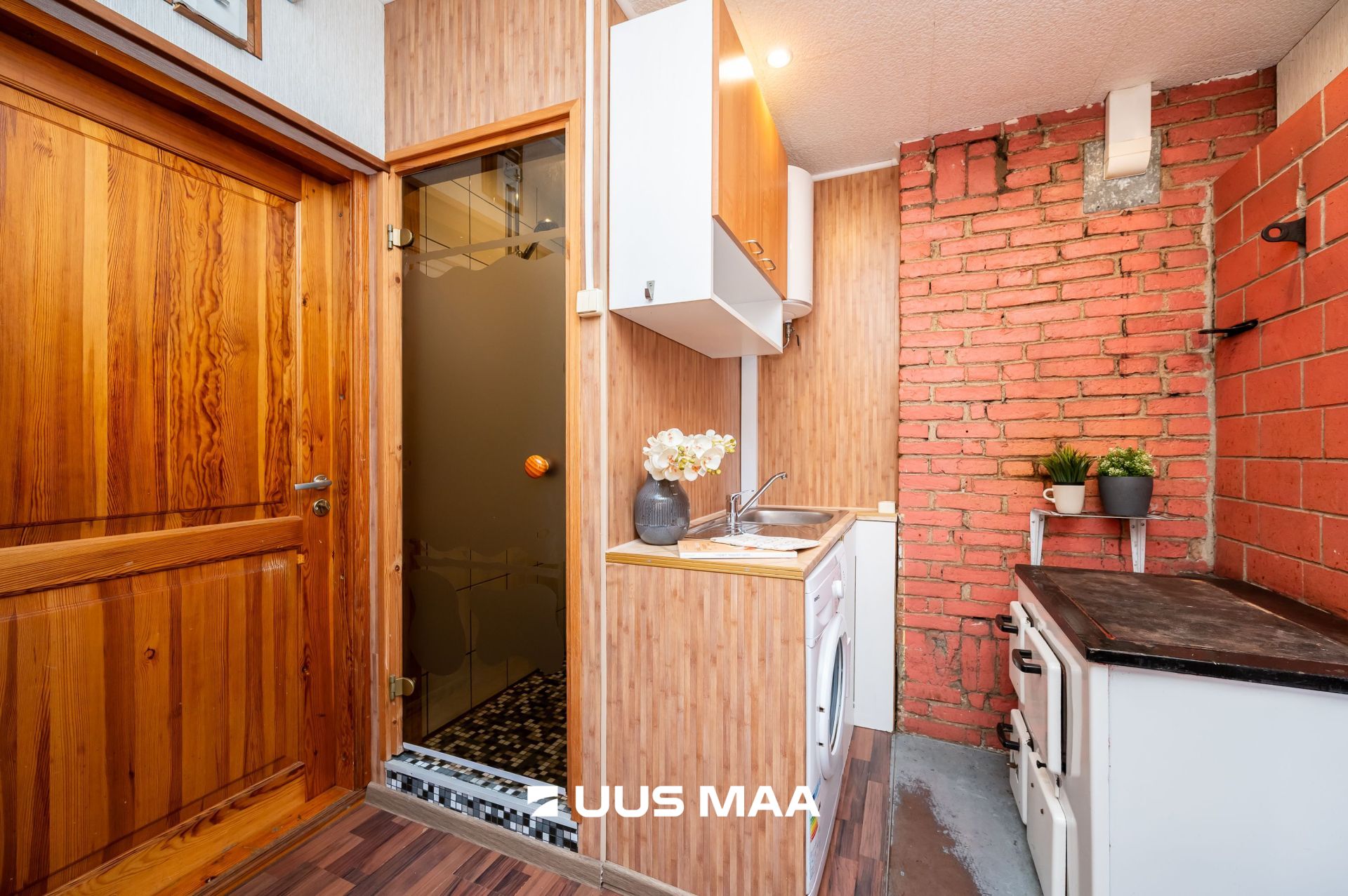 Põrandat katab laminaat, seinad on viimistletud ja siseilme on ajastutruu. Duširuum on kompaktne, elektrilise põrandaküttega. Soe vesi on boileriga. Korteris on alles soojamüür ja ahi. Aknad on plastikraamidel pakettaknad.