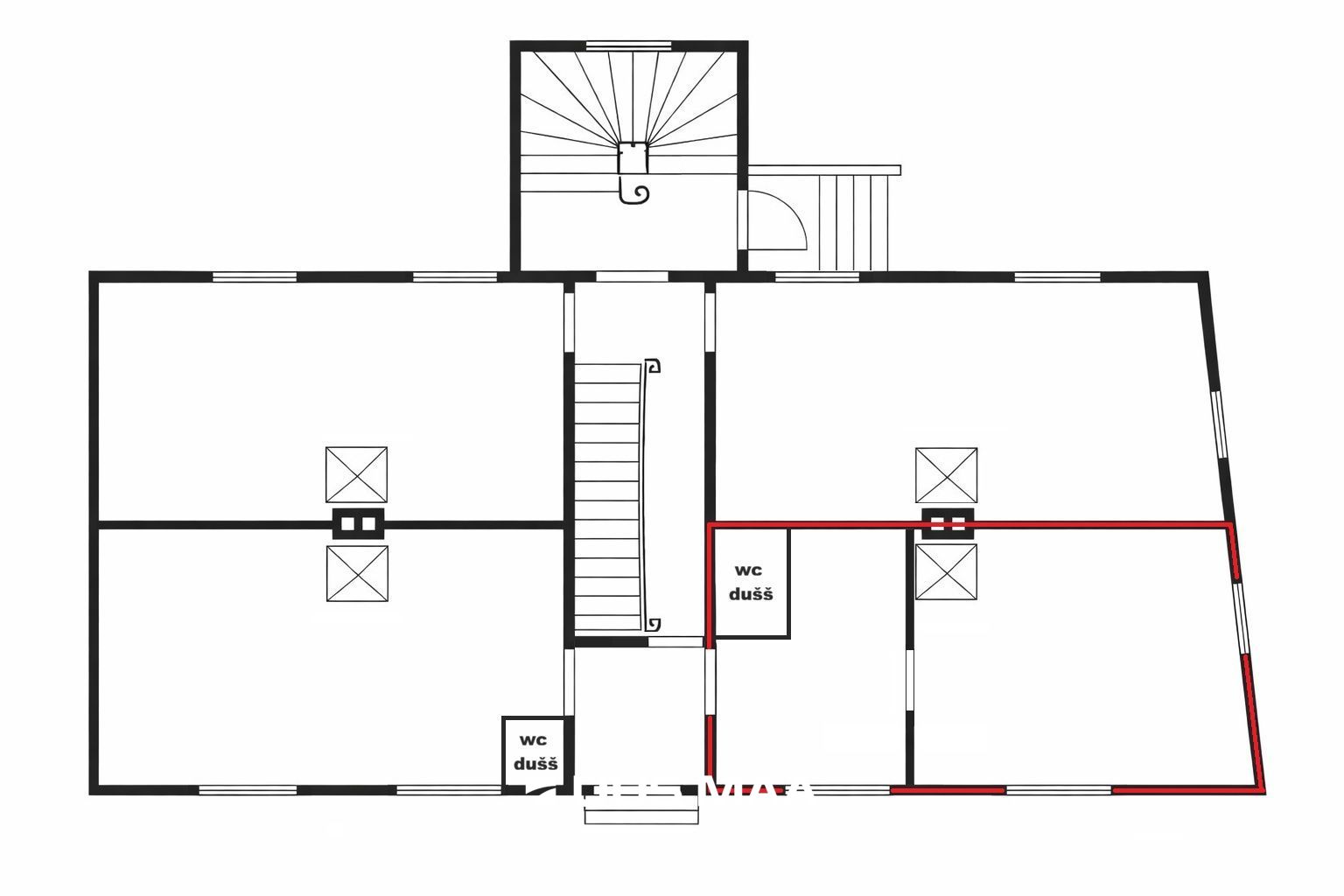 Koos moodustavad korterid 1/4 kogu majast ja 1/2 teisest korrusest.