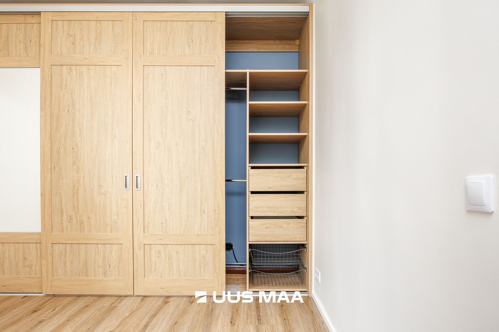 Sisseehitatud garderoob aitab igapäevaelu hästi korraldada – mahutab kõik vajaliku ja jätab ülejäänud ruumid avaraks.